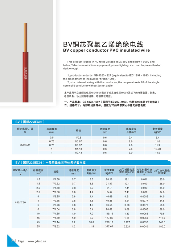 BV铜芯聚氯乙烯绝缘电线
