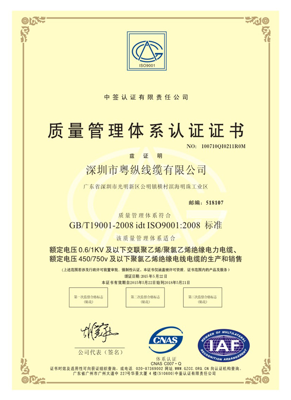 质量管理体系认证证书